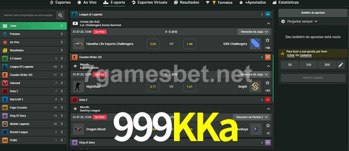 O 999KKa oferece uma grande seleção de opções de apostas em e-sports com probabilidades competitivas